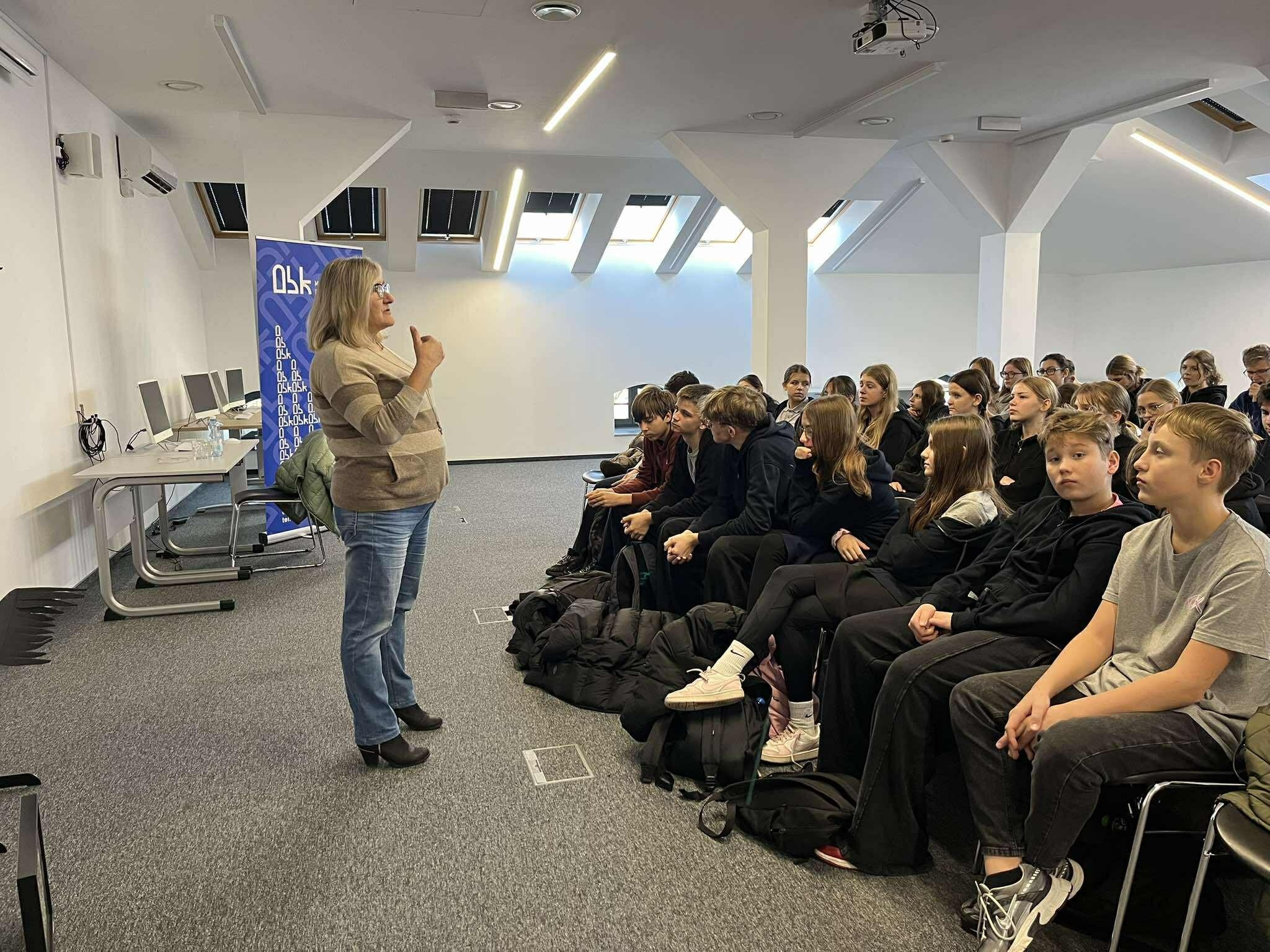 30 listopada 2025w Ogólne, Spotkania0przez Tomasz Nowak21 Obyczaje regionu świętokrzyskiego Gwara, kultura, obrzędy i obyczaje regionu świętokrzyskiego – udział klas 7 w spotkaniu z dr Alicją Trukszyn w Miejskiej Bibliotece Publicznej.