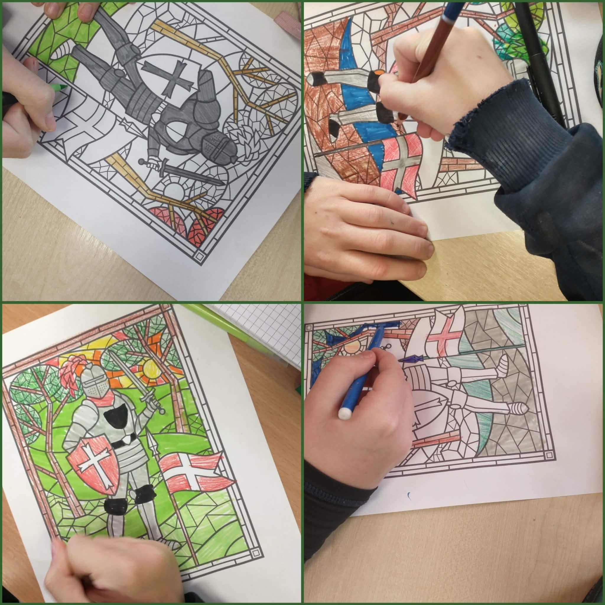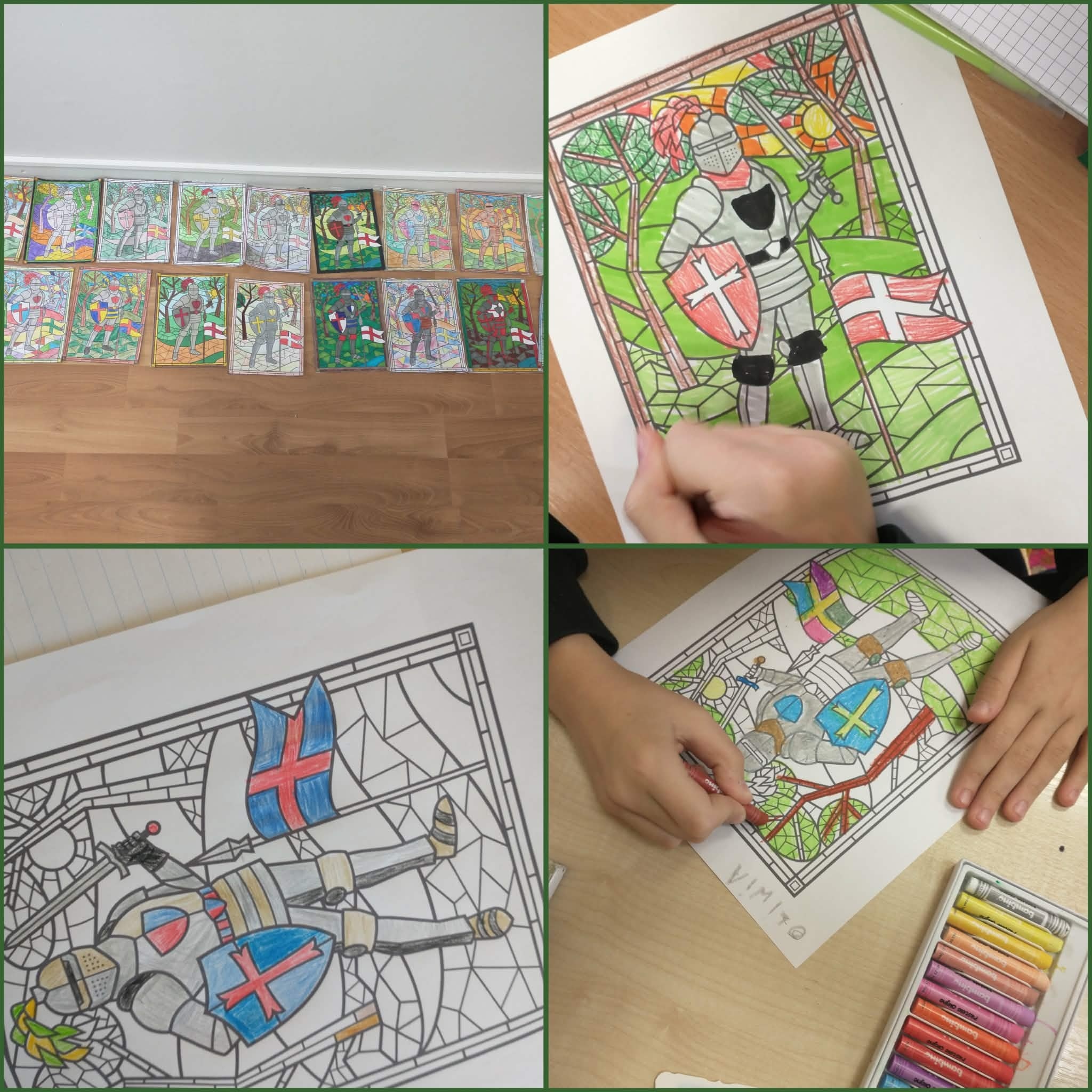 W ramach Ogólnopolskiego Projektu Edukacyjnego “Polak ma essę! 3” klasy 5 wykonały witraże średniowiecznych rycerzy. Na początku zajęć uczniowie zapoznali się z krótką prezentacją, która zawierała informacje dotyczące symboliki i znaczenia kolorów, jakie były stosowane na średniowiecznych witrażach przedstawiających sylwetki rycerzy. Dowiedzieli się także o procesie powstawania witraży. Następnie każdy z uczniów stworzył kolorowy witraż według własnego pomysłu i go opisał. Zajęcia te wprowadziły uczniów w tematykę czasów średniowiecza, a także w nowe manualne umiejętności. #Polakmaessę!3 #zadanie3 #KZEOstrowiecŚwiętokrzyski #KarolinaŚliwińska #Urszula Lasota